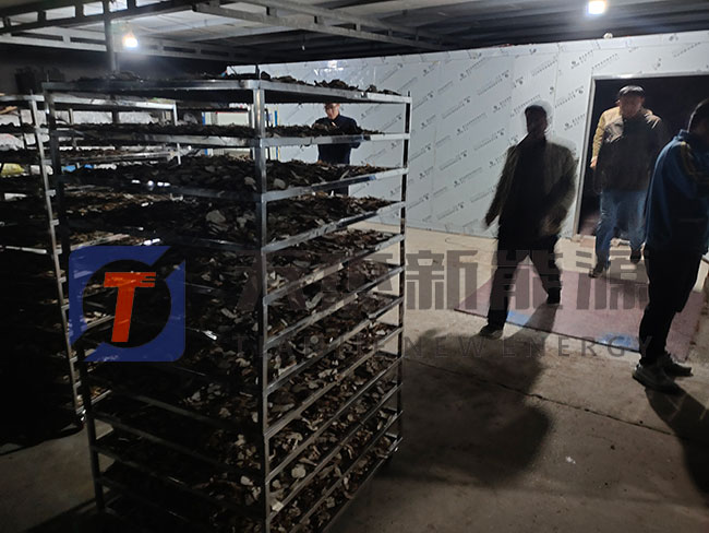 四、在前面的基礎上繼續(xù)升溫10℃,將溫度參數(shù)設置在50-60℃的范圍,隨著溫度繼續(xù)升高,山藥處于中溫中濕的狀態(tài),這時持續(xù)的溫度和循環(huán)風將熱量均勻的送到烘干機間的各個角落,山藥持續(xù)蒸發(fā)出水汽并被排濕系統(tǒng)帶走。