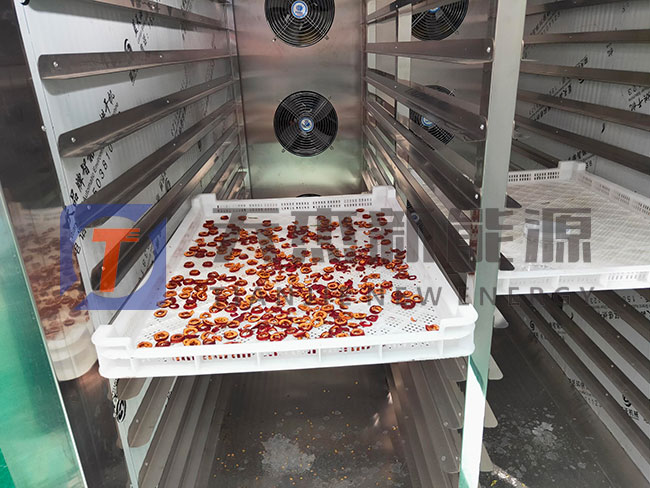 三、山楂烘干溫度:然后烘干過程山楂烘干房溫度控制在60°C---65°C,當山楂的含水量在15%左右時溫度需要逐漸減小,該過程約在12--15個小時左右。山楂的水份含量大,在烘干過程中,相對濕度在70%以上時需增大通風排濕,使其山楂烘干均勻品質(zhì)好。