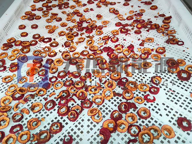 四、回軟,分級,包裝需等山楂片冷卻到常溫方可進行。如果量大的情況下,山楂片烘干系統(tǒng)可以定制多套單機版,這樣將山楂片的進料時間錯開,同時出料的時間自然分開,便于生產(chǎn)化的工作。