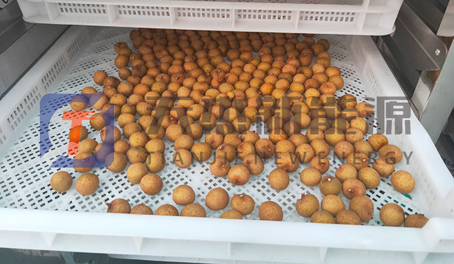 將清理好的新鮮龍眼放入托盤送入龍眼烘干機內(nèi)