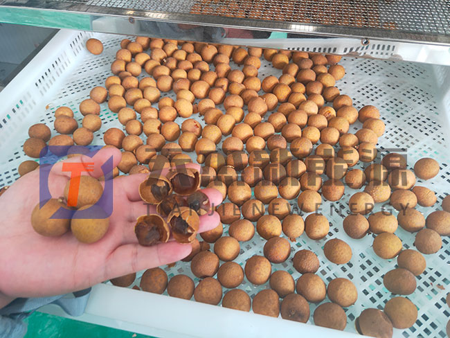 天杰新能源祝惠州龍眼烘干機開機大吉 將清理好的新鮮龍眼放入托盤送入 龍眼烘干機 內(nèi) 設(shè)置好小型家用龍眼烘干機的烘干參數(shù)開始進行烘干 被龍眼烘干機加工后的成品展示