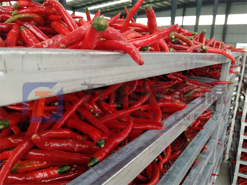 辣椒推入烘干房之后,我們根據(jù)不同的烘干要求,設(shè)置相應(yīng)的烘干參數(shù),同時在烘干過程中根據(jù)實際情況,做出相應(yīng)的烘干調(diào)整。辣椒烘干過程不需要進行翻動,直到烘干完成。烘干一批次之后,進行下一批次的烘干。這種適用于家用,種幾畝地的農(nóng)戶。