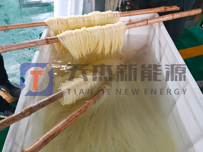 2、高溫階段:米粉進(jìn)入高溫階段后,內(nèi)部的水份就被逐步地蒸發(fā)出來并排出米粉外,米粉干燥均勻,成型好,進(jìn)入冷卻區(qū)的米粉的水份基本保持在13%左右,米粉烘干房的溫度控制在38℃-42℃之間,注意避免水份過份烤干而出現(xiàn)的爆斷情況。