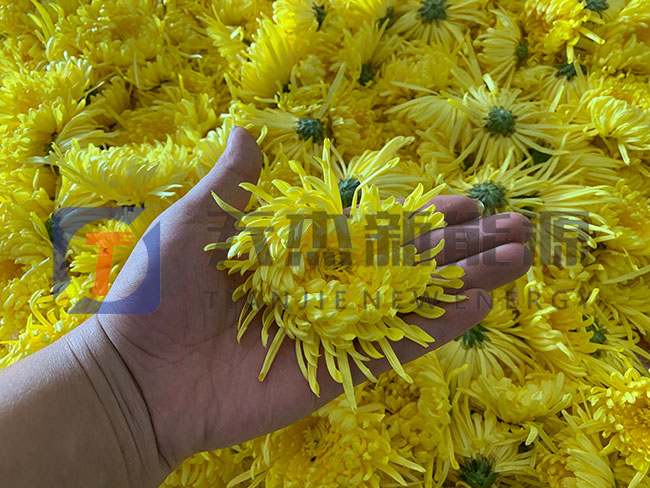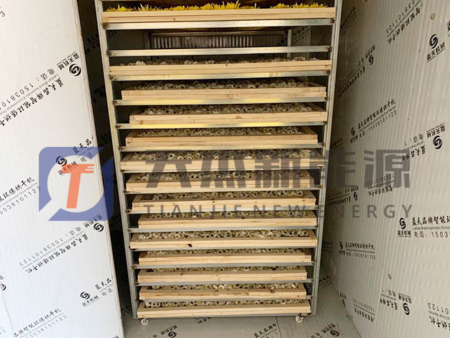 信陽金絲皇菊烘干機(jī)扶貧項(xiàng)目合作安裝現(xiàn)場 將挑選好的金絲皇菊均勻的鋪在烘盤中推入信陽金絲皇菊烘干機(jī)內(nèi)準(zhǔn)備烘干 上述所講的這臺是為信陽金絲皇菊烘干機(jī)家用,該機(jī)是一款節(jié)能減排,作業(yè)方便,烘干均勻的烘干設(shè)備,如果你對該機(jī)感興趣,想知道關(guān)于信陽金絲皇菊烘干機(jī)價格,可以留言的方式或電話聯(lián)系我們。